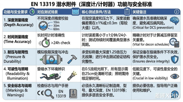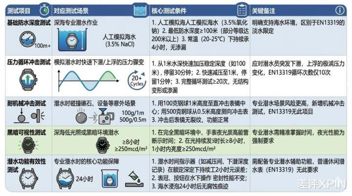 而且在 EN13319 之上,其实还有像 ISO 6425 这类更严苛的专业潜水表认证标准,它们对实际使用场景的要求会更细致,但即便是这些更高级的认证,也无法完全模拟海洋中所有的不确定性。