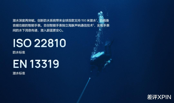 像华为在去年推出的 Watch Ultimate 这款手表,也宣传支持 100 米潜水,而它通过的潜水标准认证跟小米一样都是 EN 13319。